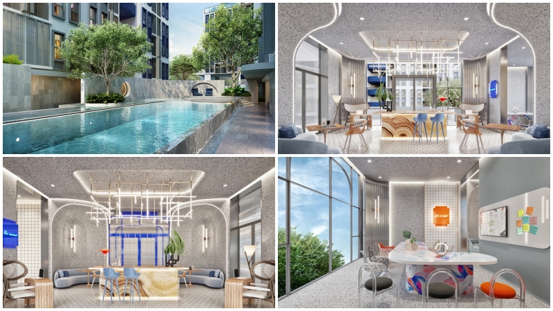 พื้นที่ส่วนกลางดีไซน์ใหม่ที่ลงตัวที่สุด ตอบโจทย์คนเมืองรุ่นใหม่ รองรับทั้งการพักผ่อน, การทำงาน และการผ่อนคลาย อาทิ Foyer Lobby โถงต้อนรับแบบ Semi-Outdoor, The Aqua สระว่ายน้ำระบบน้ำเกลือ พร้อม Jacuzzi ความยาวประมาณ 35 ม.*, The Gym ฟิตเนส 24 ชม.* พร้อมอุปกรณ์ครบครัน, The Aspire Common, The Co-Op Society ที่เป็น Multi-Function Space และ The Cloud พื้นที่สวนชั้นบนสุดที่อาคาร A พร้อมระบบ KATSAN, กล้อง CCTV และระบบรักษาความปลอดภัยสุดพรีเมียมตลอด 24 ชม. ในราคาเริ่มต้นเพียง 2.19 ล้านบาท* หรือราคาเฉลี่ย 89,000 บาท/ตร.ม.* เท่านั้นค่ะ