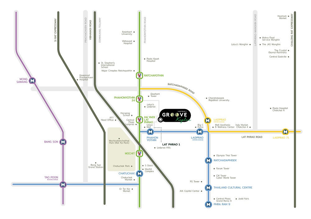 ใกล้สถานศึกษาชั้นนำครบทุกระดับชั้น และยังอยู่ใกล้แหล่งงานทั้งฝั่งลาดพร้าว, พหลโยธิน, รัชดาฯ และ New CBD พระราม 9 รวมถึงอยู่ใกล้ปอดขนาดใหญ่ของชาวกทม. ถึง 3 แห่ง นั่นก็คือ สวนวชิรเบญจทัศ (สวนรถไฟ), สวนจตุจักร และสวนสมเด็จพระนางเจ้าสิริกิติ์ฯ ที่จะขับรถไปก็ง่าย หรือจะนั่งรถไฟฟ้าไปก็สะดวก เพียง 1 สถานี*