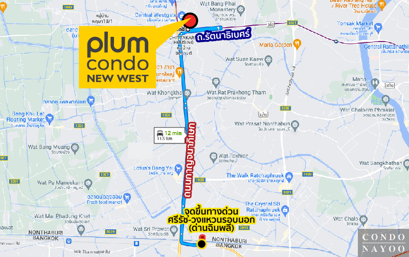สวัสดีผู้อ่านชาว Condonayoo ทุกคนครับ วันนี้ผมพามาชม Plum Condo New West โครงการใหม่ล่าสุดจาก Pruksa ตั้งอยู่ติดถนนใหญ่รัตนาธิเบศร์ ใกล้ถนนกาญจนาภิเษก, ถนนราชพฤกษ์, ถนนบางกรวย-ไทรน้อย, ถนนงามวงศ์วาน, ถนนติวานนท์ และใกล้ทางด่วนศรีรัช-วงแหวนรอบนอก