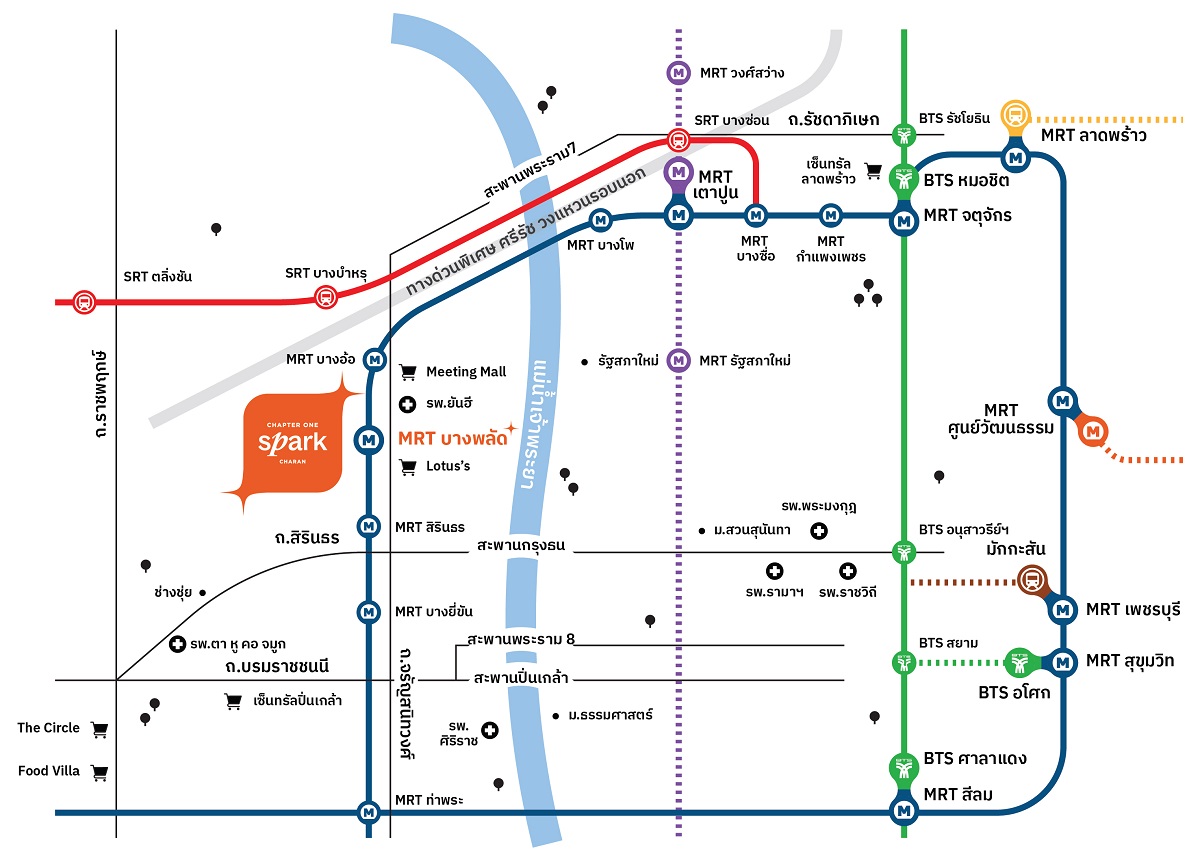 Chapter One Spark Charan คอนโดใหม่วิวแม่น้ำเจ้าพระยา จาก พฤกษา เรียลเอสเตท สร้างขึ้นภายใต้แนวคิด “เจิดจรัญ ชีวิตเจิด ๆ กับดีไซน์สุดชิค” โครงการตั้งอยู่ติดถนนใหญ่จรัญสนิทวงศ์ ใกล้ MRT บางพลัด เพียง 150 ม.* เพียง 3 สถานี ถึง Taopoon Interchange สถานีเชื่อมต่อสายสีม่วง, 4 สถานี ถึง Bang Sue Grand Station และ 6 สถานี ถึงสถานีเชื่อมต่อสายสีเขียว สวนจตุจักร ใกล้จุดขึ้นลงทางด่วนศรีรัช ด่านบางกรวย เพียง 5 นาที*