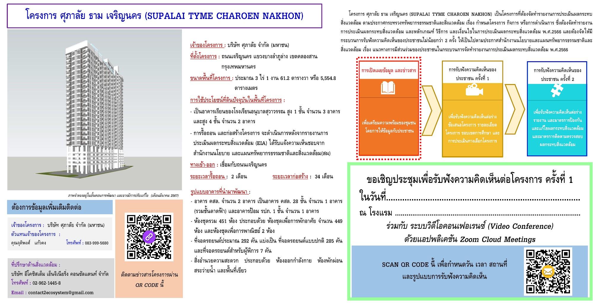 | ชื่อโครงการ | ศุภาลัย ธาม เจริญนคร / Supalai Tyme Charoennakhon |